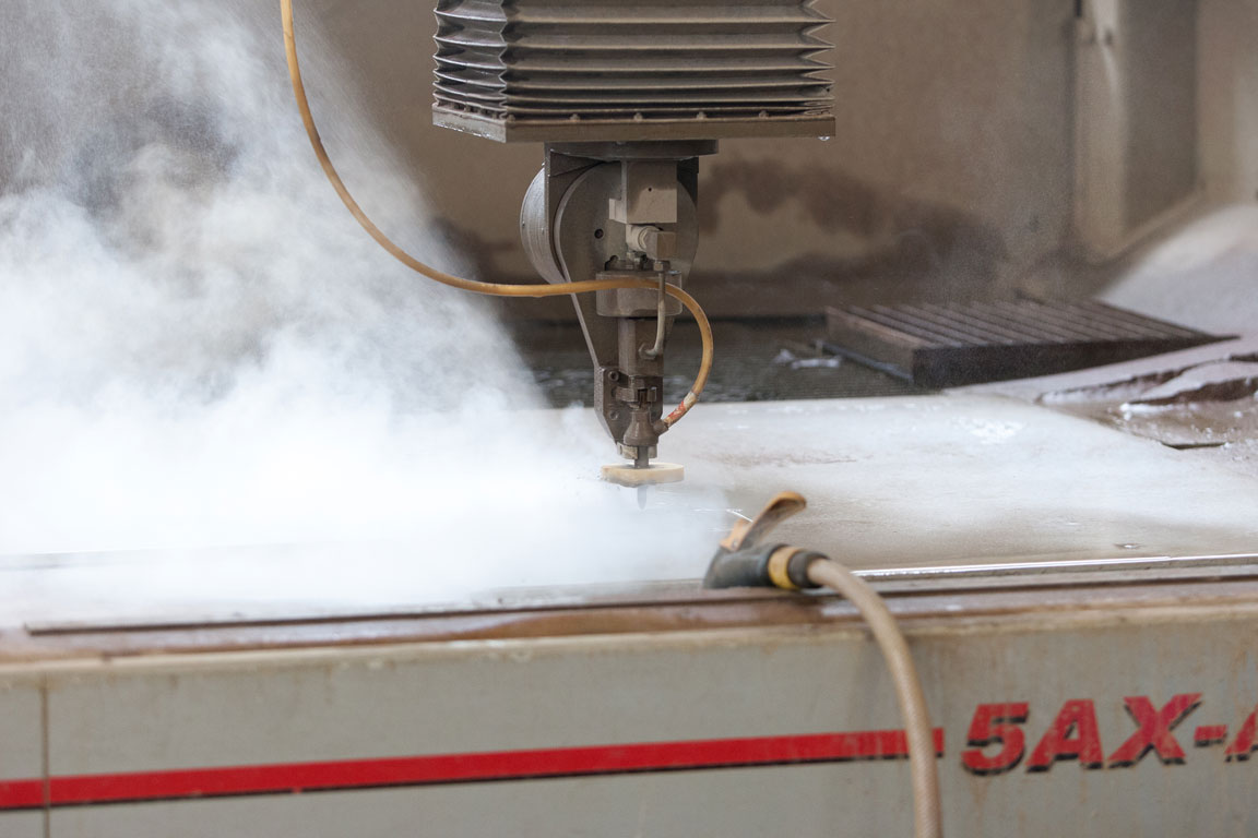 - minimale Schnittspalten durch hauchdünnen Wasserstrahl